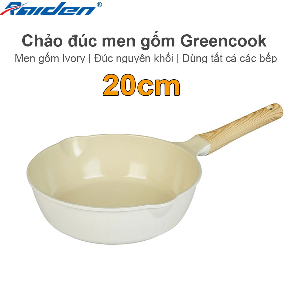 Chảo đúc men gốm Ivory Greencook GCP233-20IH