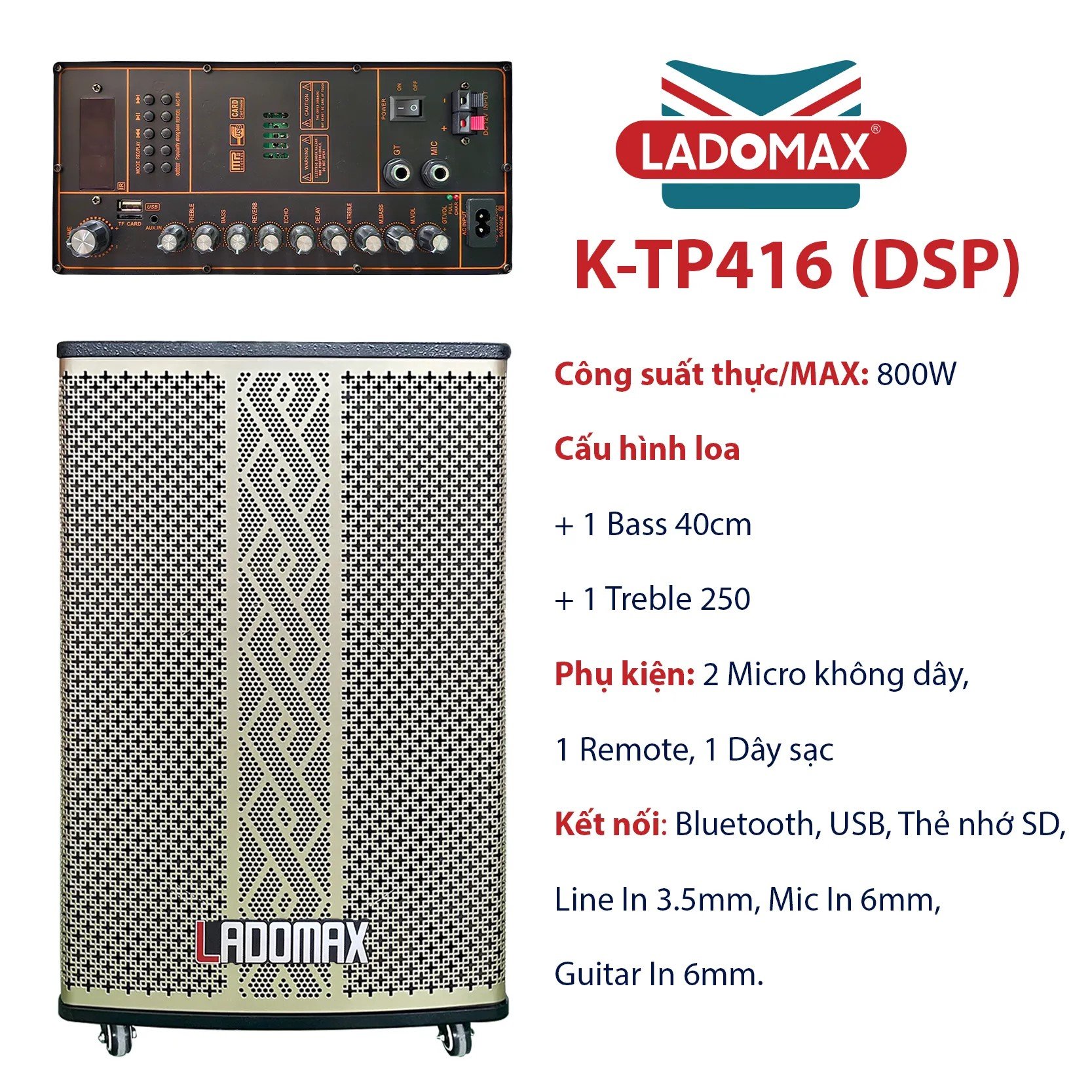 Loa kéo karaoke 4.0 tấc Ladomax K-TP416(DSP)